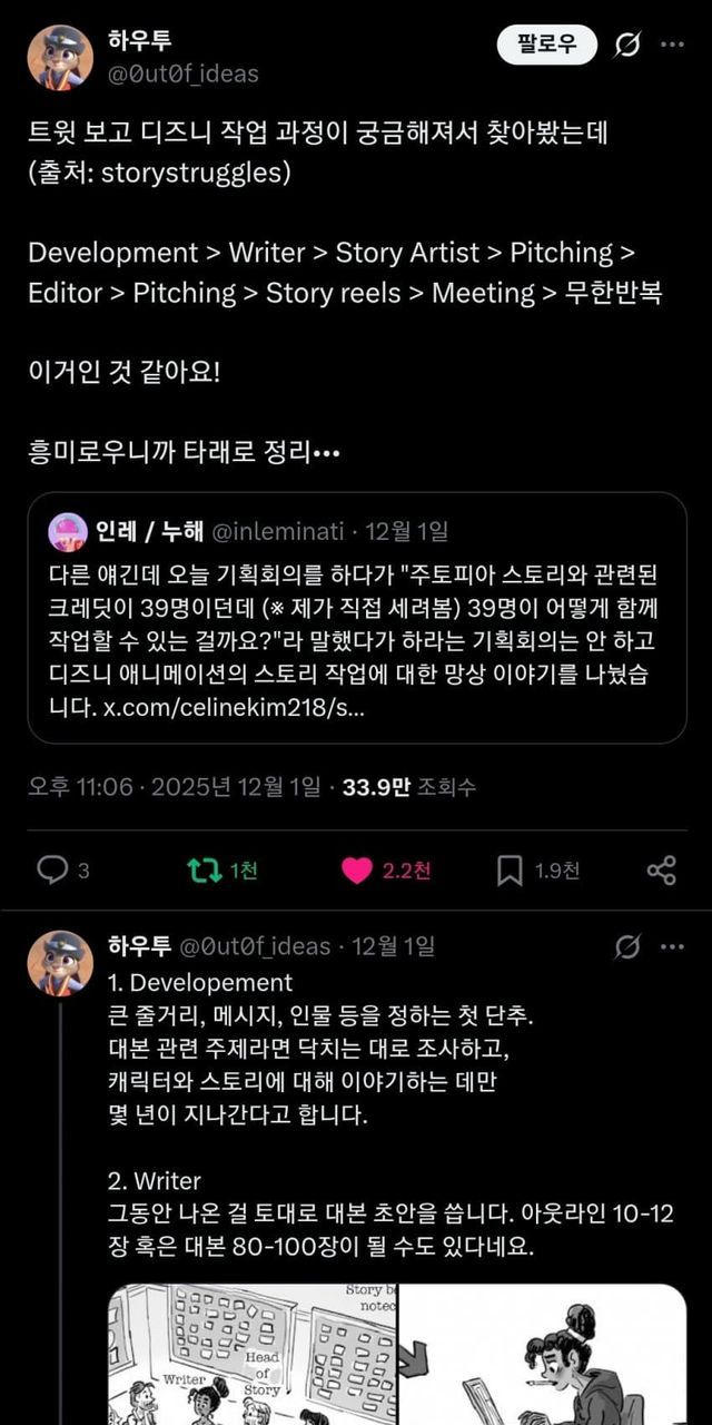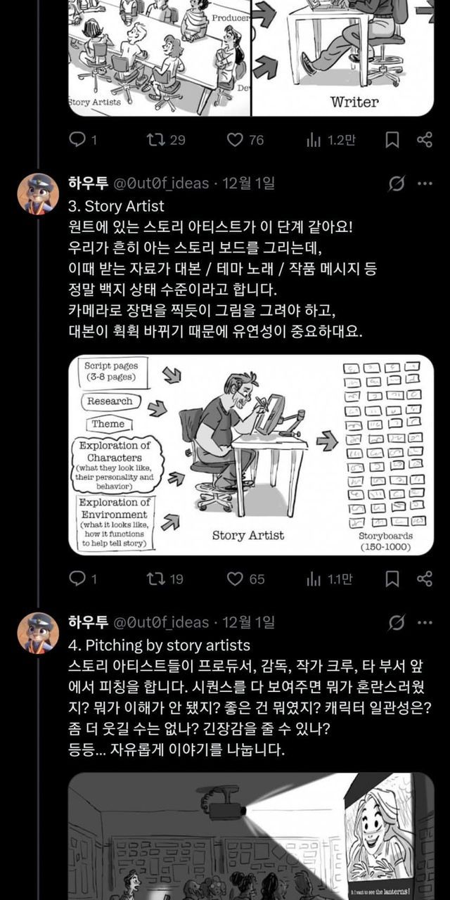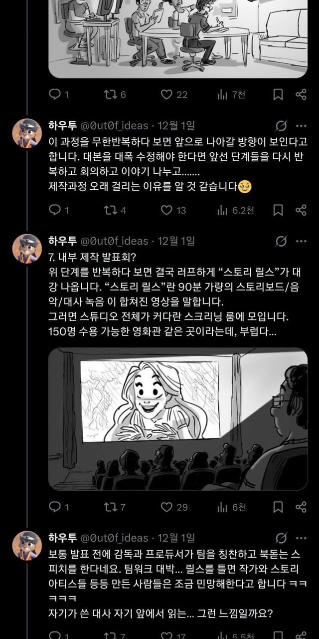 이렇게 디즈니 정도 되는 대형 제작사들은 스토리 만드는 데만 해도 체계적으로 치밀하게 준비한다고 함