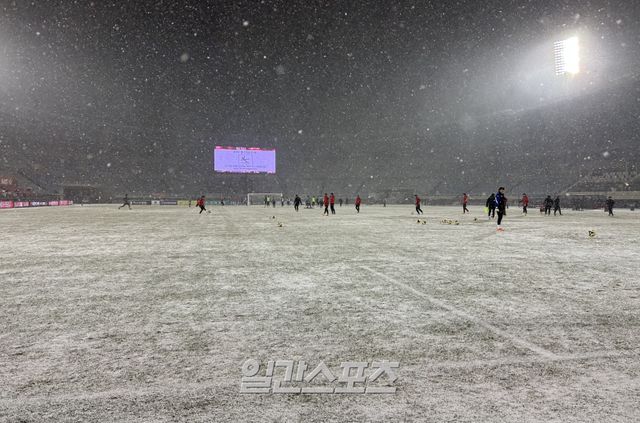 이날 부천종합운동장에는 눈이 쌓였다. 변수로 작용할 가능성이 있다.