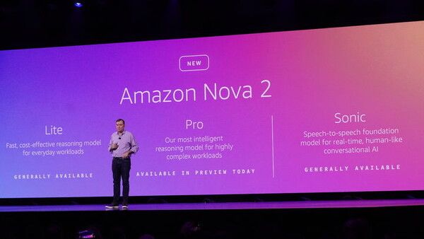 AWS는 사람처럼 자연스럽게 음성 대화를 할 수 있는 실시간 음성형 AI 모델 '노바 2 소닉'과 텍스트, 이미지, 동영상, 음성을 처리하면서 텍스트와 이미지까지 생성할 수 있는 통합 멀티모달 모델 '노바 2 옴니'도 공개했다.