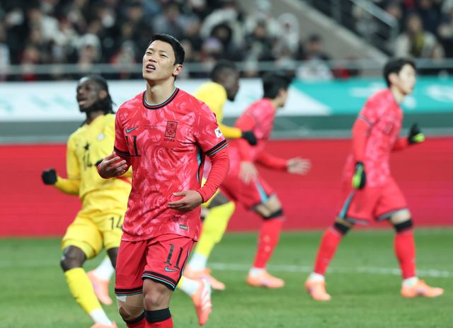 6개월 앞으로 다가온 2026 북중미 월드컵 출격도 기대하기 어려운 형국이다. 소속팀에서 주로 벤치를 지키거나 들쭉날쭉하게 교체 투입되며 실전 감각과 자신감이 떨어질 수밖에 없는 상황에 놓인 탓이다. 지난달 가나와 평가전에서 페널티킥을 얻어내고도 실축한 장면을 두고 ‘강심장’이었던 황희찬의 자신감이 떨어졌다는 지적이 나오기도 했다.