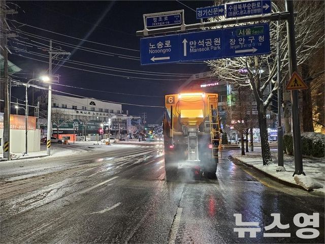 (뉴스영 이현정 기자) 수원시가 제설 장비와 인력을 투입해 제설 작업에 총력을 기울이고 있다.