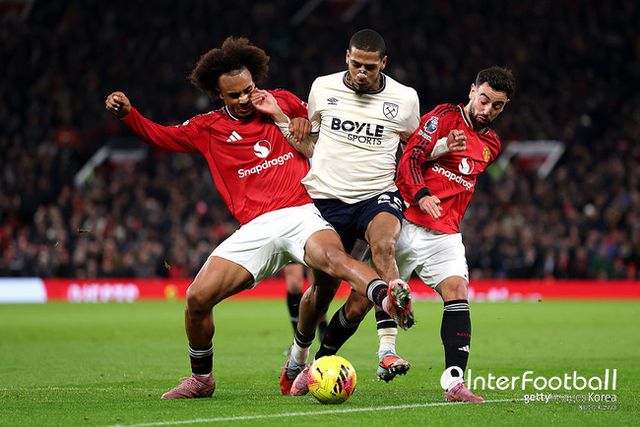 맨유가 아쉬움을 삼켰다. 전반 28분 우측에서 치고 올라간 디알로가 문전으로 패스했고 지르크지가 슈팅 연결했지만, 웨스트햄 수비에 막혔다. 이어진 쿠냐의 오버헤드 슈팅, 브루노의 중거리 슈팅은 모두 무위에 그쳤다.