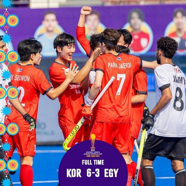 뉴시스 보도에 따르면, 한국은 4일(현지 시간) 인도 마두라이에서 열린 이집트와의 제14회 FIH 남자 주니어 월드컵 대회 6일째 17-24위전에서 6-3 승리를 거뒀다.