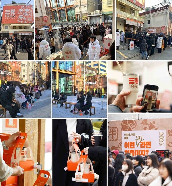 팝업스토어에서는 조리된 삼양1963 라면을 전용 텀블러에 담아 제공하는 서비스가 진행됐다. 성수동 일대를 둘러본 뒤 재방문 시 텀블러를 무료로 세척해주는 프로그램도 운영돼 큰 호응을 얻었다. 전용 텀블러 구매 문의도 꾸준히 이어졌다.