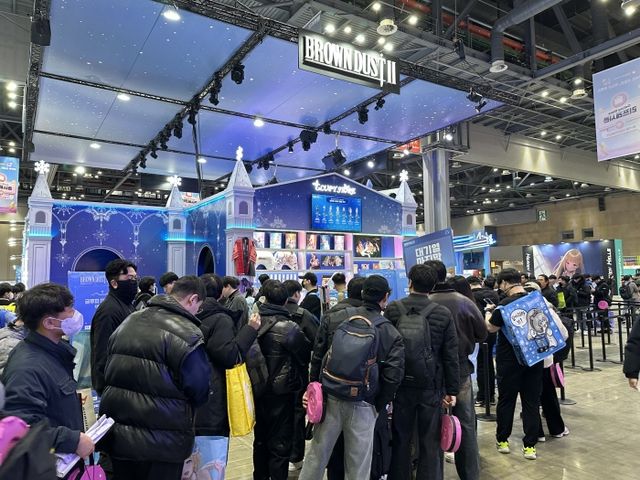 바로 옆에는 네오위즈 '브라운더스트2' 부스가 위치해 있었다. 부스 내에서는 스탬프 투어 등 다양한 콘텐츠를 마련하고 있었다. 다양한 굿즈를 노리고 방문한 이들로 부스는 인산인해를 이뤘다. 행사 관계자는 "(입장까지 시간이) 얼마나 걸릴지 가늠하기 어렵다"며 관람객에게 양해를 구하고 있었다.