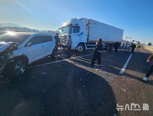 5일 오전 9시7분께 청주시 청원구 3순환로 오동분기점에서 14t 화물차가 신호대기하고 있던 차량 1대를 추돌했다.