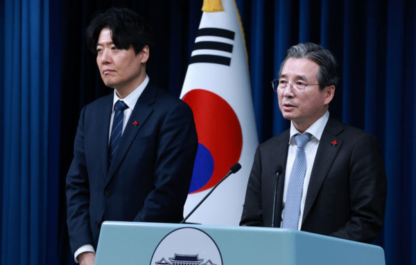 김용범 정책실장은 5일 용산 대통령실에서 브리핑을 열고 이재명 대통령과 손정의 소프트뱅크 회장의 면담을 계기로 MOU가 체결됐다고 발표했다.