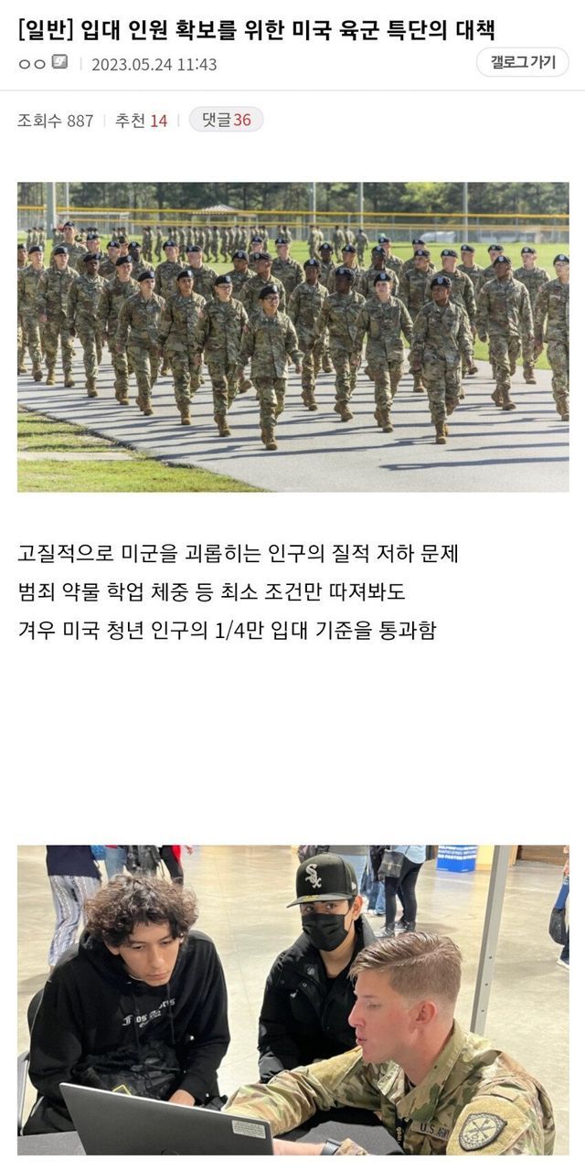 입대 인원 확보를 위한 미국 육군 특단의 대책
