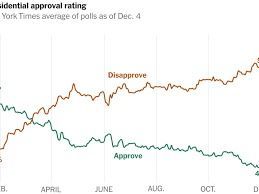 NYT는 각종 여론조사를 종합한 평균치에서 트럼프에 대한 순지지율이 몇 주 전 마이너스 10%포인트 수준에서 마이너스 14%포인트로 떨어졌다고 밝혔다.