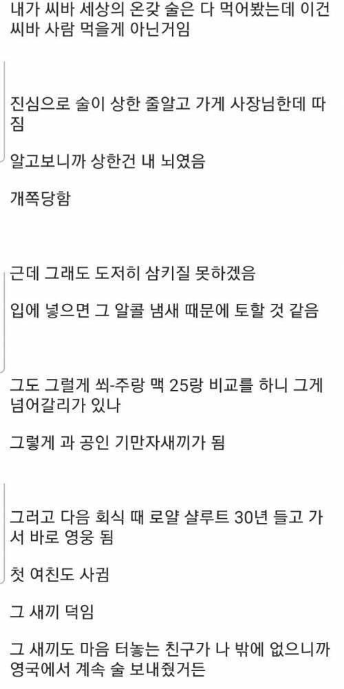 주량이 현실성은 떨어지긴 한데.. 그냥 영화 한 편 봤다고 생각하는 편이...
