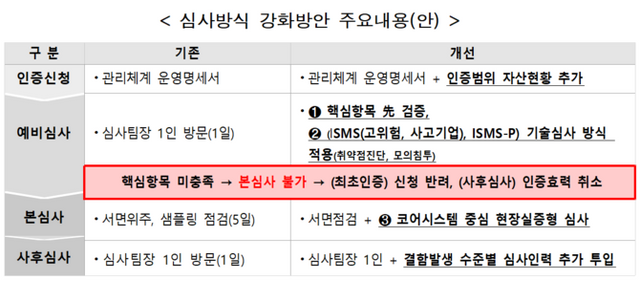 사후관리도 대폭 강화한다. 인증기업의 유출사고 발생 시 적시에 특별 사후심사를 실시해 인증기준 충족 여부를 확인할 수 있도록 하고, 사후심사 과정에서 인증기준의 중대 결함이 발견되는 경우 인증위원회 심의·의결을 거쳐 인증을 취소한다.
