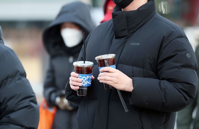겨울철 두터운 옷차림을 한 시민이 차가운 음료를 들고 발걸음을 옮기고 있다. 기사 이해를 돕기 위한 자료 사진 / 뉴스1