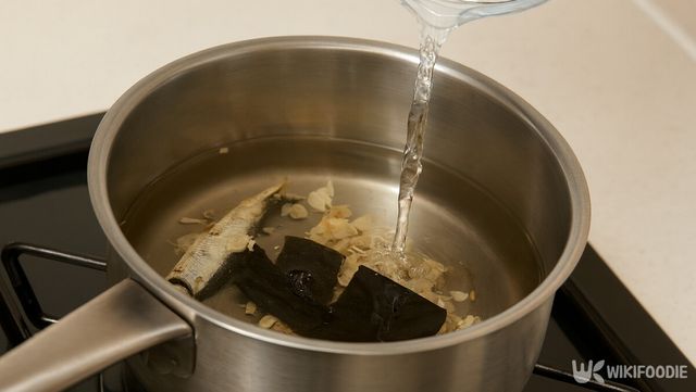 1. 냄비에 디포리, 멸치, 건새우, 다시마를 넣고 약 10분간 끓여 육수를 만든다.