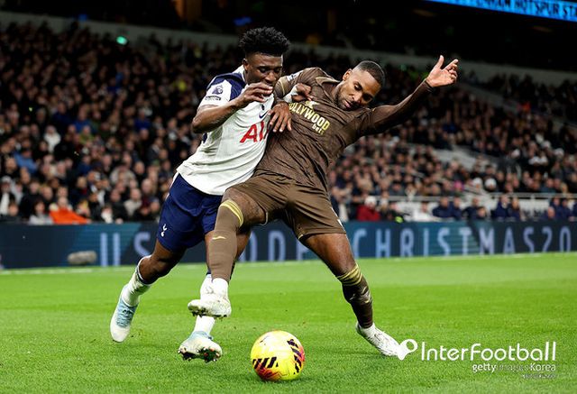 시작부터 토트넘은 강하게 몰아쳤다. 전반 7분 코너킥에서 판 더 펜 슈팅은 골문 위로 날아갔다. 전반 14분 쿠두스가 내준 걸 히샬리송이 슈팅으로 연결했는데 막혔다. 전반 16분 시몬스 중거리 슈팅은 빗나갔다. 전반 24분 브렌트포드 역습이 전개됐고 티아고가 슈팅을 했는데 비카리오가 막았다.