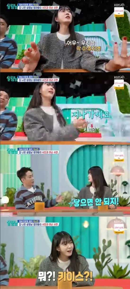이날 박서진은 이요원에게 평소에 배우자와 스킨십을 하는지 물어봤다. 프로미스나인의 채영은 "가족끼리는 그런 거 아니라던데"라고 말했다.