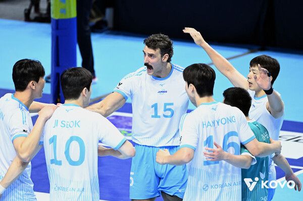 대한항공의 외국인 거포 카일 러셀이 22득점으로 팀 승리를 견인했고, 토종 공격수 정지석은 19득점으로 힘을 더했다.