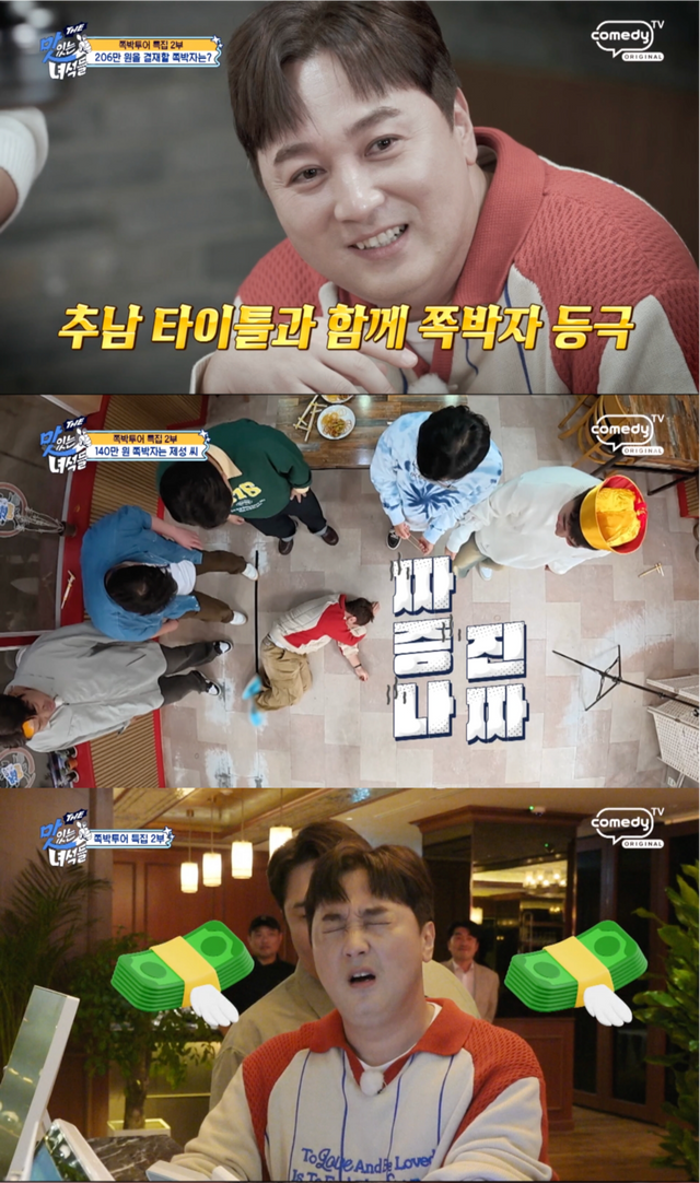 5일 방송된 코미디TV ‘THE 맛있는 녀석들’은 ‘더 맛있는 쪽박투어’ 특집 2부로 꾸며진 가운데, 황제성의 파란만장한 독박 행진이 웃음과 안타까움을 동시에 안겼다. 앞선 식당에서 ‘쪼는맛’ 벌칙에 걸려 한 입만 먹고도 식사비를 떠안은 황제성은 세 번째 식당에서도 또다시 불운의 중심에 섰다.