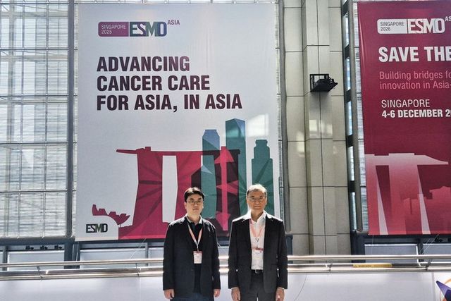 ESMO 아시아 2025에 참석한 이성욱 알지노믹스 대표이사와 홍성우 부사장. ⓒ 알지노믹스