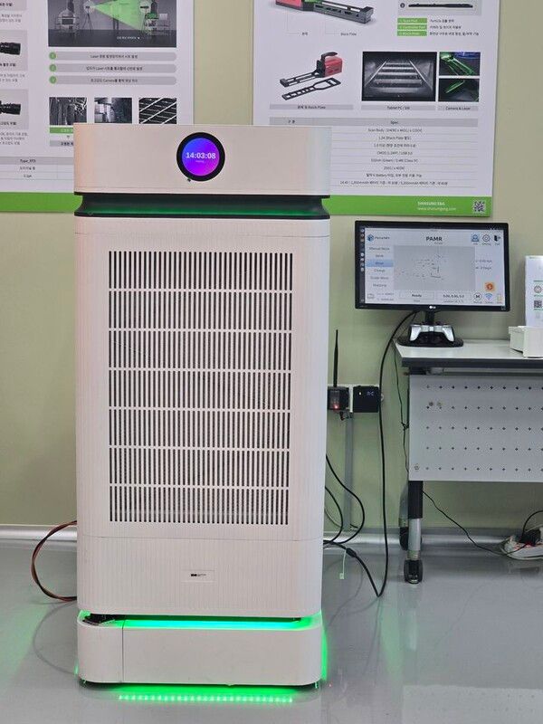 신성이엔지의 자율주행 기반 스마트 공기정화장치는 오염원 발생 위치로 스스로 이동·정화한다. 고정밀 무선 유해가스 측정 센서와 디지털트윈 기술로 공기질을 실시간 감지하고 오염원을 추적해 공간 사각지대를 최소화한다. 유기화합물(VOCs)·유해가스·미세먼지 등 6종 이상 유해물질을 제거하는 복합 필터와 재생 시스템을 적용해 운영 효율과 지속가능성을 확보하고, 산업현장·로비·복도 등에서 한 대로 넓은 공간을 정화한다.