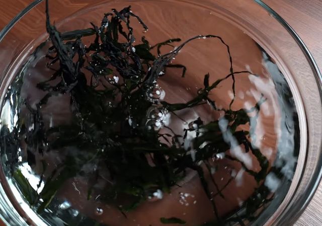 한 번 불린 미역에 계란물을 더하면 어떤 변화가 일어날까.