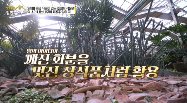 곳곳에 토기가 깨져있는 것에 대해 식물원장은 3년 전에 불이 났다고 설명했다. 3억원 어치 토스카나 화분이 깨졌지만, 식물원장의 딸인 대표의 제안에 이를 인테리어로 활용하게 됐다고. 화재 피해를 입었으나 한 달 만에 재단장했다고 한다.