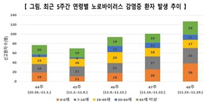 동절기 노로바이러스 감염증 환자 수가 최근 4주간 증가 추세를 보이며 작년 11월 5주 동기간 대비 58.8% 증가했다.