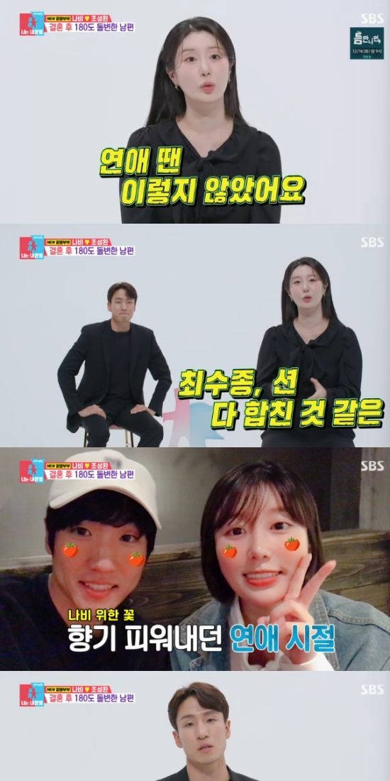 이어 "연애 때는 이러지 않았다. 착하고 천사같고, 최수종, 션,차인표 선배님까지 합쳐 놓은 것 같은 그런 사람이었다"고 덧붙였다.
