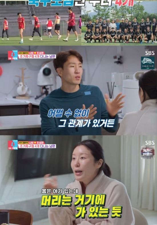 이날 방송에서 나비의 남편 조성환은 "축구선수 생활을 했다. 은퇴 후에 엘리트 초중고 축구코치를 하다가 지금은 제가 직접 축구교실을 운영하고 있다. 3년차에 접어들었다. 유치부, 초등부, 취미반, 선수반을 가르치고 있다"고 소개했다.