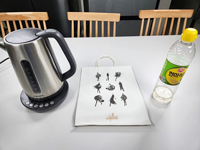 준비물 - 전기포트, 종이가방, 식초, 분무기