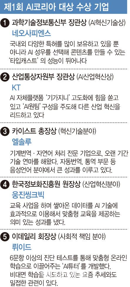 한편 네오사피엔스는 2020년 제1회 이데일리 AI코리아대상에서 과학기술정보통신부 장관상을 받은 바 있다.