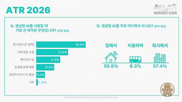 ATR 2026은 생성형 AI에 대한 인식과 활용 방식, 사용 행태 변화 흐름을 추적하기 위한 연례 리포트 시리즈의 첫 결과물로 정리됐다. 조사는 기술 변화보다 사람의 행동 변화에 초점을 맞추고 있으며, 생성형 AI가 생활 전반에서 어떤 방식으로 자리 잡아가는지를 종합적으로 설명한다.