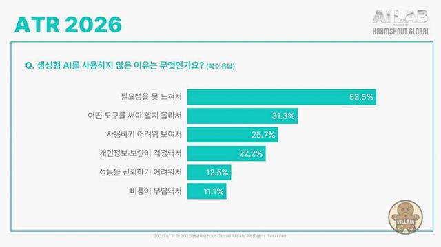 김재희 함샤우트 글로벌 대표는 “ATR 2026은 기술 중심이 아닌 사람 중심의 AI 리포트이며, 생성형 AI가 실제로 어떻게 받아들여지고 있는지를 정기적으로 추적하는 출발점”이라고 설명했다. 이어 “기술 격차와 수용 격차를 객관적 데이터로 확인하고, 개인과 조직이 AI를 활용할 수 있는 실질적 방향성을 제시하는 콘텐츠로 ATR이 자리매김하길 기대한다”고 덧붙였다.
