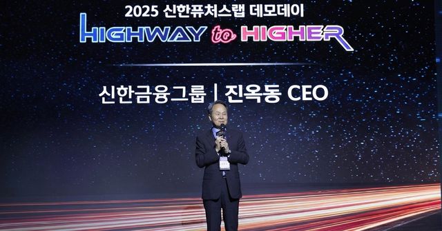 진옥동 신한금융그룹 회장이 지난 2일 서울 광진구 파이팩토리에서 열린 '신한 퓨처스랩 데모데이2025'에 참석해 격려사를 하고 있다. / 신한금융