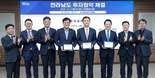 [파이낸셜경제=김영란 기자] 전라남도는 9일 도청 서재필실에서 금호타이어㈜와 미래형 스마트 타이어 생산기지 구축을 위한 6천609억 원 규모의 투자협약을 했다.