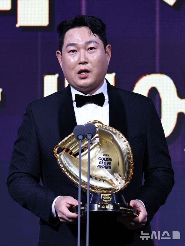 뉴시스 보도에 따르면, 양의지는 9일 서울 송파구 롯데호텔 잠실에서 열린 2025 신한 쏠뱅크 KBO 골든글러브 시상식에서 포수 부문 수상자로 호명됐다.