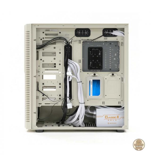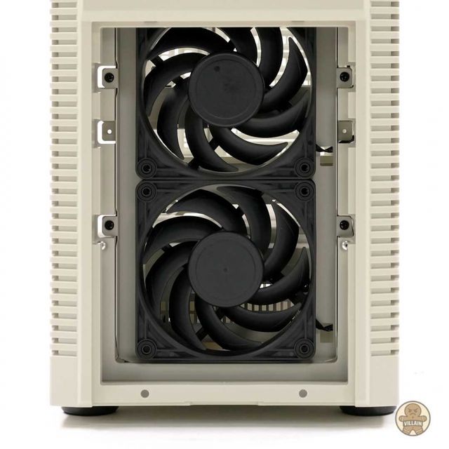 FLP02W가 이렇게 철저히 옛 기억을 되살려냈지만, 적어도 상단만큼은 변화를 줄 수밖에 없다. 최근의 프로세서가 뿜어내는 발열을 해소하려면 수냉쿨러가 필요하기 마련인데, 때문에 어떤 케이스라도 수냉쿨러의 라디에이터를 장착할 공간을 확보해야 한다.