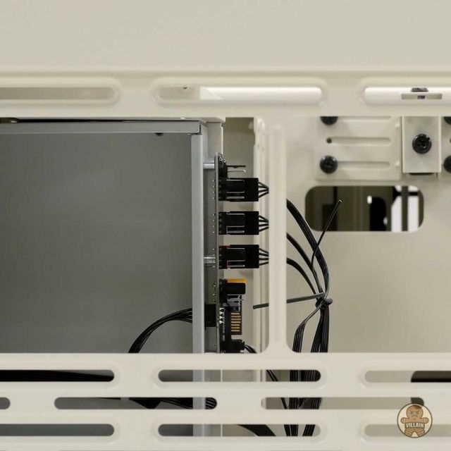 파워 서플라이 장착 공간 역시 최대 250mm까지 지원한다. ATX 규격의 파워 서플라이가 140mm이고, 최근의 고용량 파워 서플라이라도 170mm~200mm 정도의 길이를 갖는 게 일반적이므로 파워의 장착과 모듈러 케이블의 정리를 위한 공간까지 넉넉하게 확보할 수 있다.