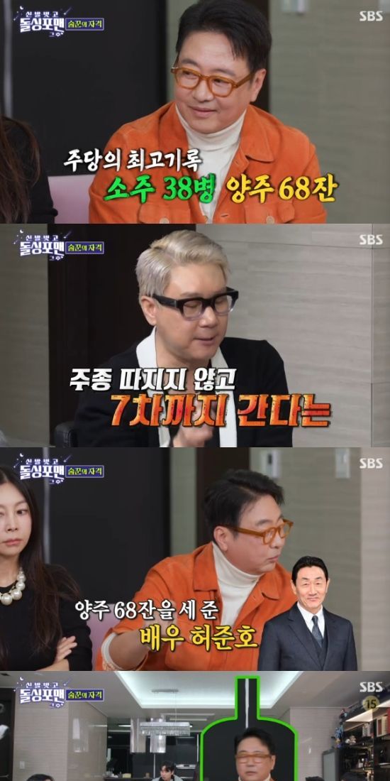 윤다훈은 "술을 마시는 사람은 자기가 어느정도 마시는지 모른다. 당시에 허준호가 양주 68잔 마신 것을 세어줬었다. 그 때는 20대였으니까 가능했다"며 민망해했다.