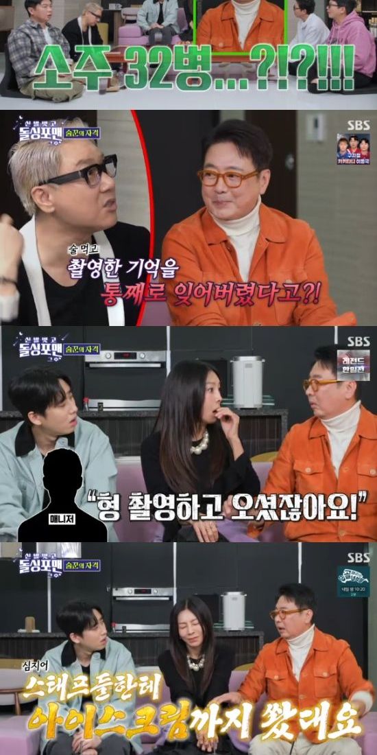 이어 이상민은 "그런데 술을 마시고 촬영을 한 기억을 잊었던 적이 있다던데?"라면서 놀랐고, 윤다훈은 "아침 6시 촬영이었는데 전날 술자리가 늦어진거다"라고 회상했다.