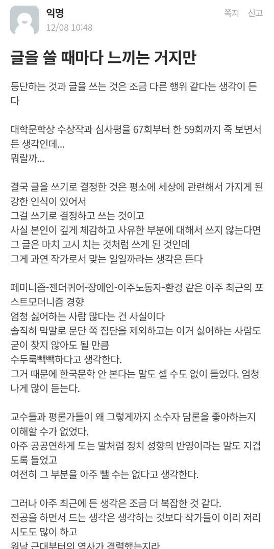 에타펌) 등단하는 것과 글을 쓰는 것은 조금 다른 행위 같다