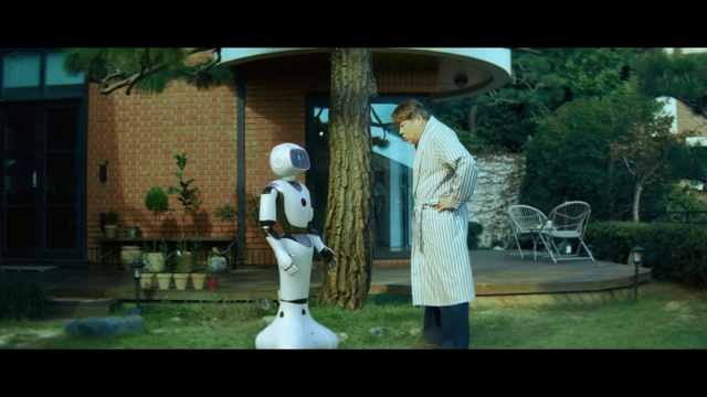 김성균은 깜찍한 외모의 로봇을 훈련하는 모습을 연기했다. 로봇은 처음에는 옮기던 그릇을 깨뜨리거나 달리다가 넘어지기도 하지만, 수많은 시행착오를 거쳐 사람에 가까운 AI로 탈바꿈한다. 이 일련의 과정을 AIDC가 뒷받침한다는 내용을 녹였다.