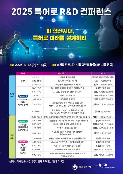 특히 카카오, 포스코기술투자 등 산업계 전문가들이 디지털 전환과 투자 전략을 발표하며, 6G 통신, SDV(소프트웨어 중심 자동차), 휴머노이드 로봇 등 아직 절대 강자가 없는 미래 태동 기술의 표준특허 확보 방안도 집중적으로 다뤄질 예정이다.