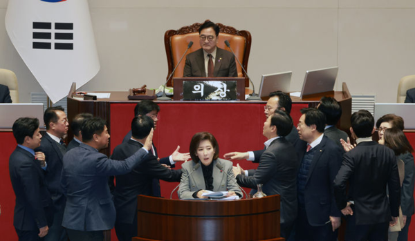 국민의힘 관계자는 10일 "국민의힘이 갖고 있는 제도적·정치적 선택지가 줄어든 상황에서 여론전이 사실상 유일한 무기"라며 "연말 법안 대치 국면이 내년 지방선거의 전초전 성격을 띠게 될 가능성이 크다"라고 했다.