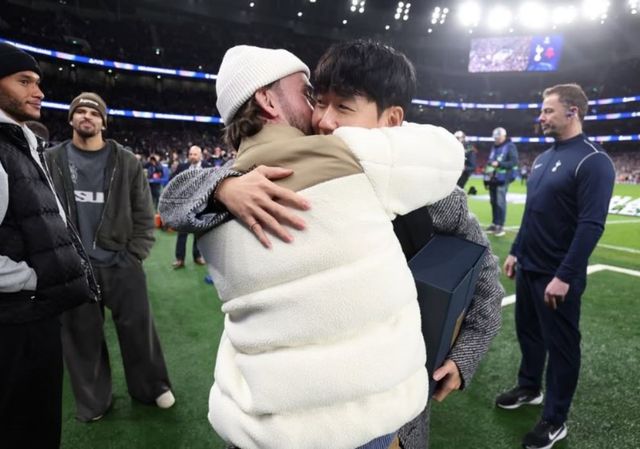 이후 토트넘의 레전드이자 상징적인 수비수였던 레들리 킹이 그라운드로 나와 손흥민 앞에 섰다. 킹은 토트넘 엠블럼으로 된 트로피를 직접 건네며 그를 안았다.