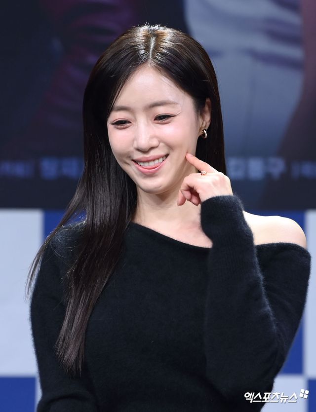 이날 제작발표회에서 함은정은 블랙 원 오프숄더 니트와 롱스커트를 매치한 우아한 올블랙 스타일링으로 등장했다. 스커트에 깊은 슬릿 디테일과 스트랩 힐로 세련미를 더하며, 결혼 후 한층 단단해진 여배우의 존재감을 드러냈다.