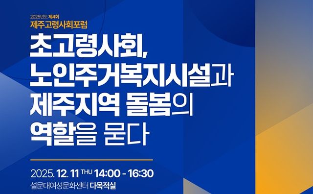 [한라일보] 제주특별자치도는 11일 오후 2시 설문대여성문화센터에서 '2025년 제4회 제주고령사회포럼'을 연다.