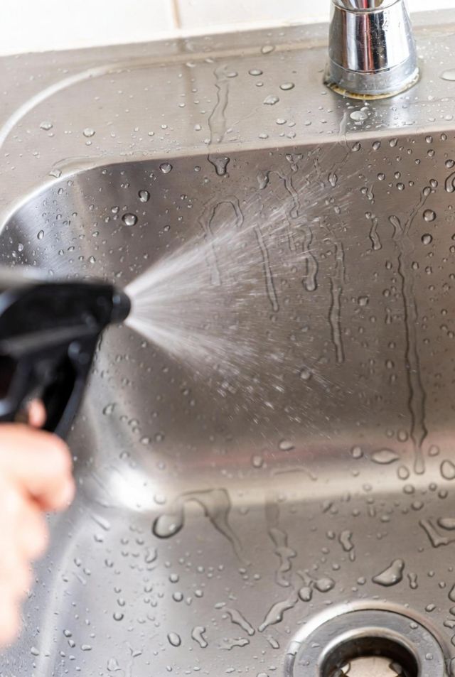 싱크대 표면에 생기는 하얀 물때는 탄산칼슘 등 알칼리성 성분으로 이루어져 있어 산성 용액과 반응해 분해되기 쉽다. 싱크대를 한 번 물로 헹군 뒤 치킨무 국물을 골고루 뿌려준 뒤, 얼룩이 심한 곳은 키친타월을 덮어 10분 정도 ‘팩’ 형태로 불리면 효과가 커진다. 이후 스펀지로 문질러 닦고 마지막으로 물로 헹궈주면 산성 성분이 남지 않아 안전하다.