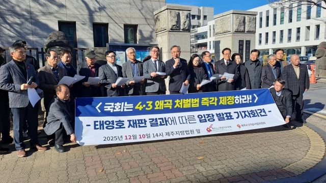 고창범 4·3희생자유족회장이 태영호 전 국회의원에 대한 법원의 판결 직후, 제주지법 정문 앞에서 열린 기자회견에서 "사법부의 판결에 깊이 감사드린다"며 "4·3왜곡 처벌 규정을 즉각 개정해야 한다"고 촉구했다.