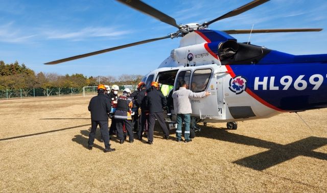 소방은 헬기를 급파해 낮 12시 15분쯤 A씨를 인근 병원으로 이송했다.