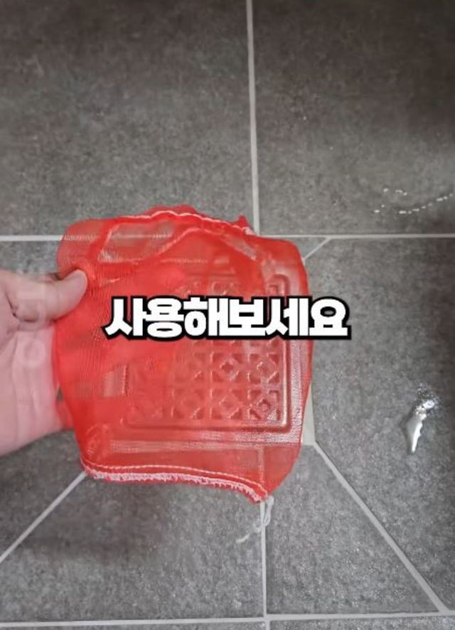 두 번째는 배수구 필터로의 변신이다. 쉽게 오염되는 욕실 배수구에 양파망 윗부분을 잘라 씌운 뒤 덮개를 다시 올려주기만 하면 된다. 샤워 후 배수구 안쪽에 머리카락이 끼는 것을 효과적으로 막아 관리가 한층 수월해진다.